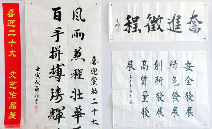 此次展覽,從各單位上交的各類作品中精選出書法作品16件,攝影作品21件,繪畫作品7件及手工藝作品10件進行現(xiàn)場展示。遒勁有力的書法作品,美不勝收的攝影作品和繪畫作品,以及不同風格的手工藝作品洋溢著北京化工集團干部職工期盼黨的二十大勝利召開的喜悅心情,也充分展現(xiàn)出大家豐厚的文化素養(yǎng)和多彩的業(yè)余文化生活。