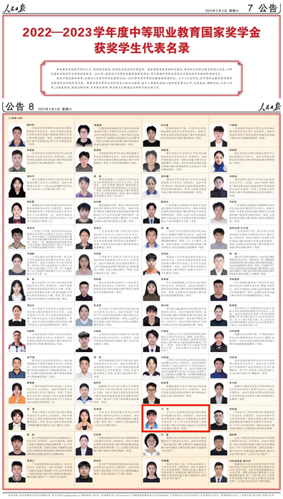 5月4日、5日,《人民日報》專版刊登了100名研究生國家獎學(xué)金獲獎學(xué)生優(yōu)秀代表、100名本專科生國家獎學(xué)金獲獎學(xué)生優(yōu)秀代表、100名中等職業(yè)教育國家獎學(xué)金獲獎學(xué)生優(yōu)秀代表名錄。北京市工業(yè)技師學(xué)院環(huán)保與生物制藥系2021級環(huán)境保護(hù)與檢測專業(yè)學(xué)生王珂,榜上有名。