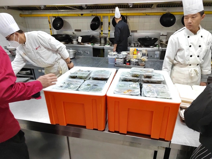 為此,賓館早在5月下旬就統(tǒng)籌協(xié)調(diào)廚師人員、配菜人員,并根據(jù)每日不同的菜譜,具體安排烹飪時(shí)間和順序。此外,賓館還對(duì)配送路上花費(fèi)的時(shí)長進(jìn)行具體測算,同時(shí)明確要求,辦公室和后勤人員要在保證安全衛(wèi)生的條件下,充實(shí)到分裝配送一線,最大限度確保每一份盒飯,在中午休息時(shí)第一時(shí)間送達(dá)到用餐人員手中。當(dāng)賓館的送餐人員將盒飯配送至比賽現(xiàn)場,看著賽事人員大口大口吃著冒著熱氣的飯菜時(shí),內(nèi)心涌起無比的自豪和欣慰。