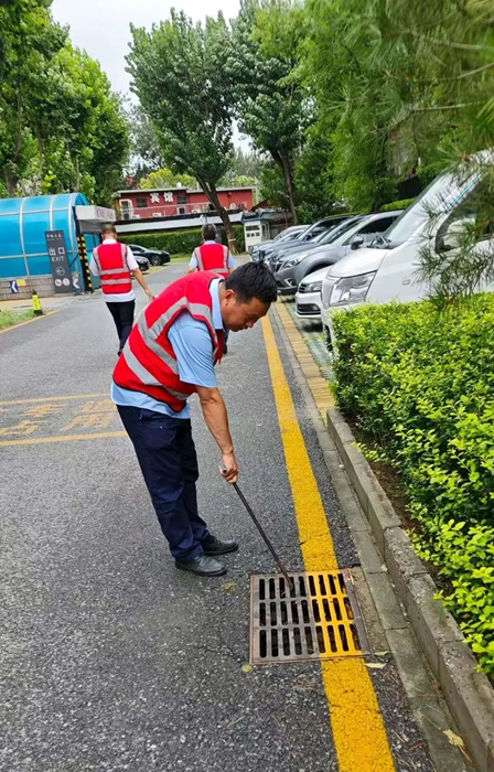 在接到暴雨紅色預(yù)警后,各事業(yè)部迅速行動(dòng),對(duì)樓宇屋面、排水管道、下水井等進(jìn)行細(xì)致檢查,及時(shí)清理雜物,同時(shí)各事業(yè)部迅速將防汛物資補(bǔ)充到可能發(fā)生汛情的低洼位置,以便出現(xiàn)險(xiǎn)情第一時(shí)間救援。