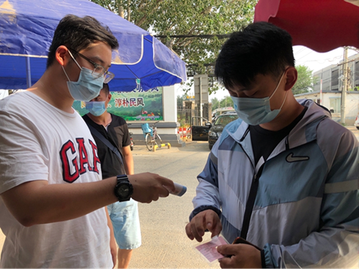 新三余村外來人口較多,進(jìn)出人流量大,值守檢查不能有絲毫的馬虎,在做好自身防護(hù)的情況下,認(rèn)真檢查進(jìn)出人員的出入證與身份證、測量體溫、并做好登記工作。