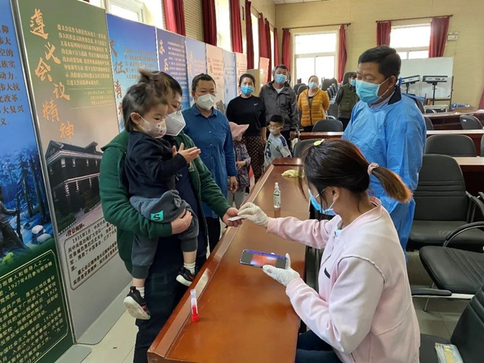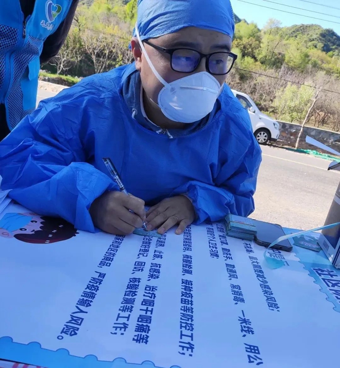 共產黨員趙新武參加延慶區大莊科鄉里長溝村核酸檢測志愿服務。
