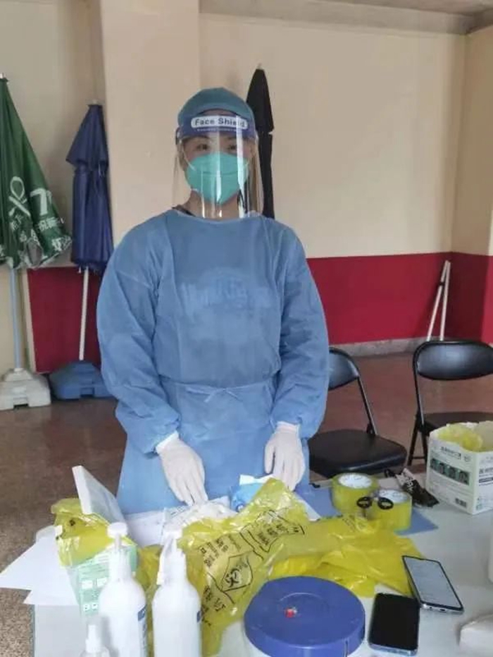 截至5月中旬,我已參加社區(qū)志愿服務8天,期間由于長時間身著防護服連續(xù)工作,身體出現(xiàn)了脫水狀況,但僅休息一日后,繼續(xù)奔赴社區(qū)防疫“戰(zhàn)場”。