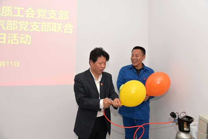 在交流中,北普公司包裝氣部黨支部書記王紹武介紹了工廠生產運行情況,并重點匯報了包裝氣黨支部全體黨員為高質量完成此次服務保障任務,及時成立臨時黨支部,強化黨建引領,發揮戰斗堡壘作用;黨員同志們從生產、運輸、現場操作,到落實安全流程、人員培訓,始終發揮先鋒模范作用,以硬核擔當帶領一線骨干,把好操作關、守好安全線,最終圓滿完成保障任務的感人經歷。中國能源化學地質工會黨支部的黨員同志們還在現場人員指導下,親手進行氣球充裝,親身感受重大活動服務保障中的緊張氛圍。
