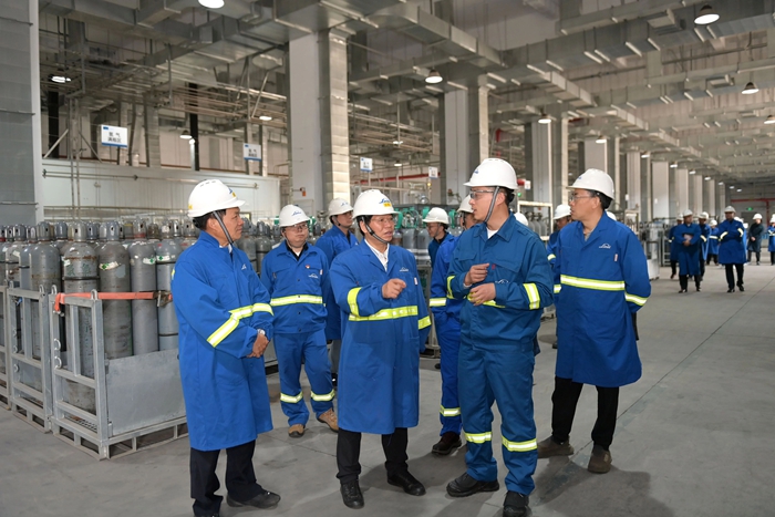 隨后,蔡毅德一行還參觀了包裝氣工廠。參觀后雙方表示,要加強共建聯建,共同筑牢戰斗堡壘作用,以高質量黨建推動高質量發展,為能源化學地質工會更好服務企業,為企業更好弘揚勞模精神、勞動精神、工匠精神搭建起共建平臺。