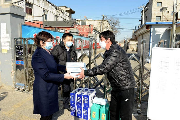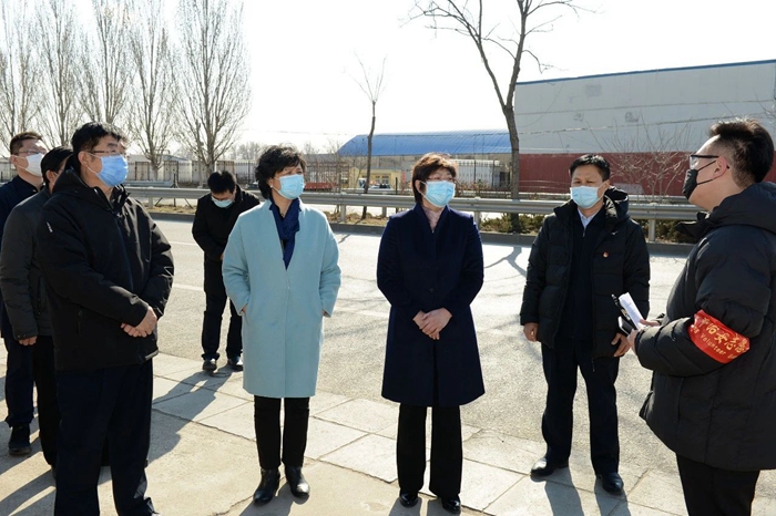 3月13日下午,市國(guó)資委黨委副書(shū)記、副主任晉秋紅前往大興區(qū)西紅門(mén)鎮(zhèn)振亞莊村,現(xiàn)場(chǎng)調(diào)研北化集團(tuán)疫情防控和下沉干部工作情況,并向振亞莊村捐贈(zèng)防護(hù)物資和慰問(wèn)品。北化集團(tuán)黨委副書(shū)記吳瑞峰向晉秋紅一行介紹了集團(tuán)公司復(fù)工復(fù)產(chǎn)情況,并就集團(tuán)公司承擔(dān)的七項(xiàng)疫情防控保障任務(wù)作了簡(jiǎn)要介紹,北化集團(tuán)團(tuán)委副書(shū)記、下沉團(tuán)隊(duì)臨時(shí)黨支部書(shū)記聶晶匯報(bào)了下沉駐村干部工作情況。