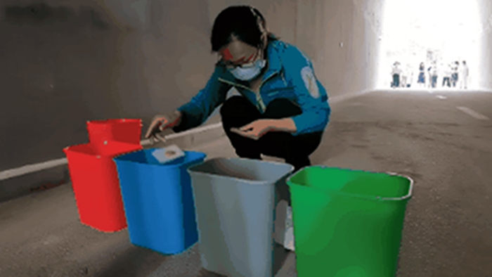華騰新天地事業部等多個事業部在固定地點放置“四色”垃圾桶,宣貫垃圾分類相關知識;在電梯間滾動播放垃圾分類指導視頻資料;在公共區域張貼宣傳資料。